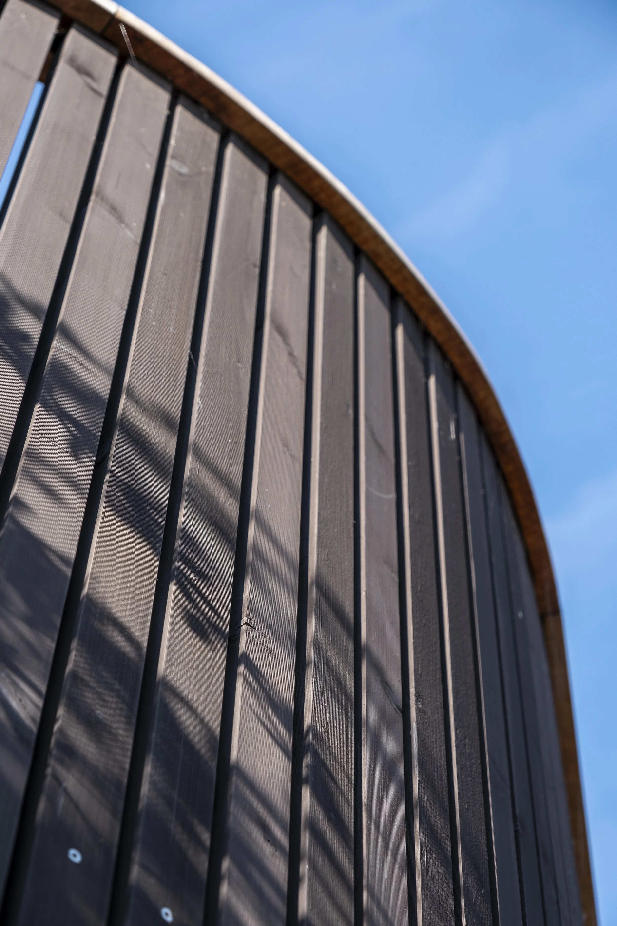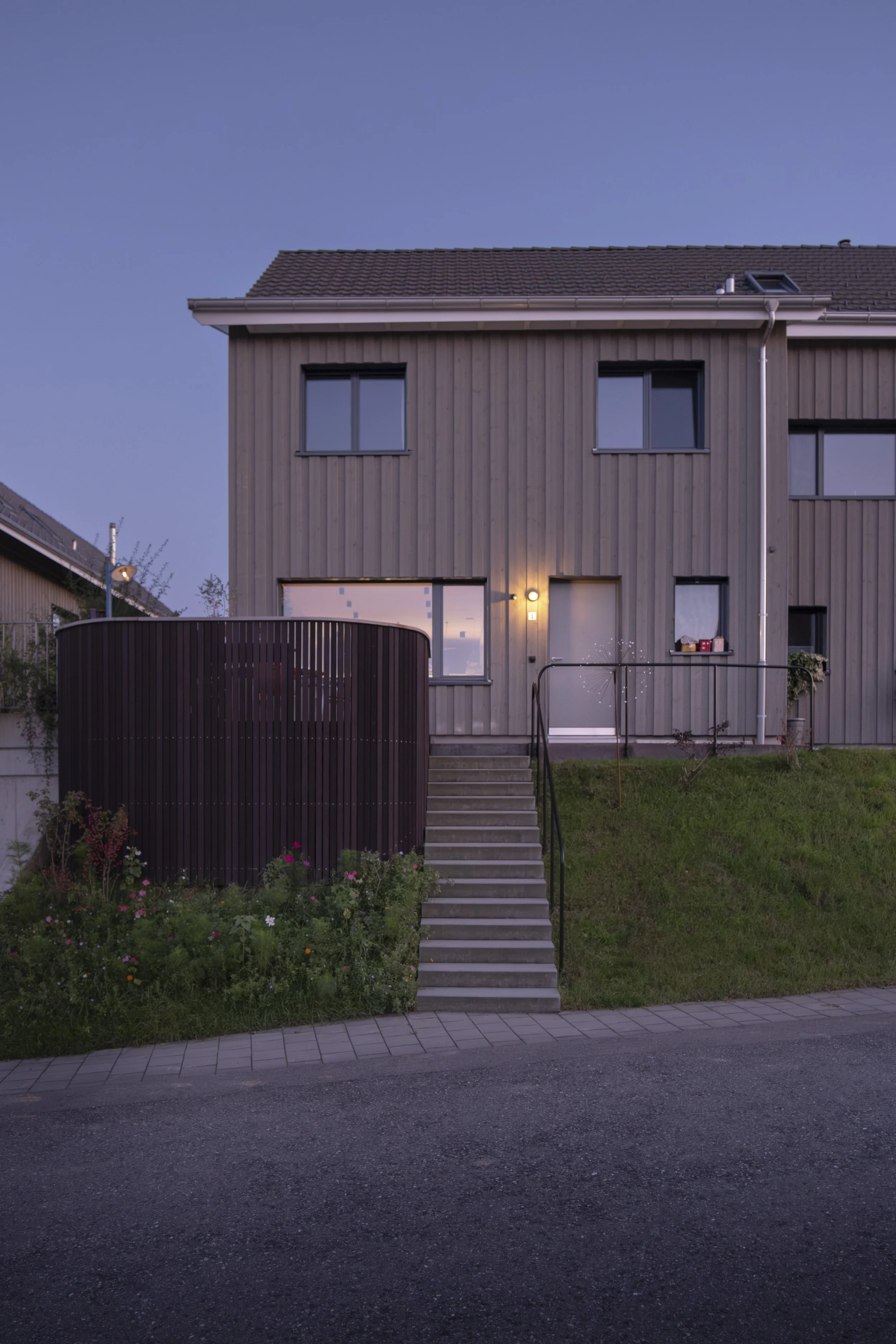 Von der eckigen Variante, die die Bauherrschaft anfänglich skizzierte, haben wir uns rasch verabschiedet. Eine runde Sache sollte es werden, als Gegenstück zu all den geraden Vertikalen an diesem Haus und in der gesamten Reihe der kahlen Einfamilienhäuser in der Strasse.